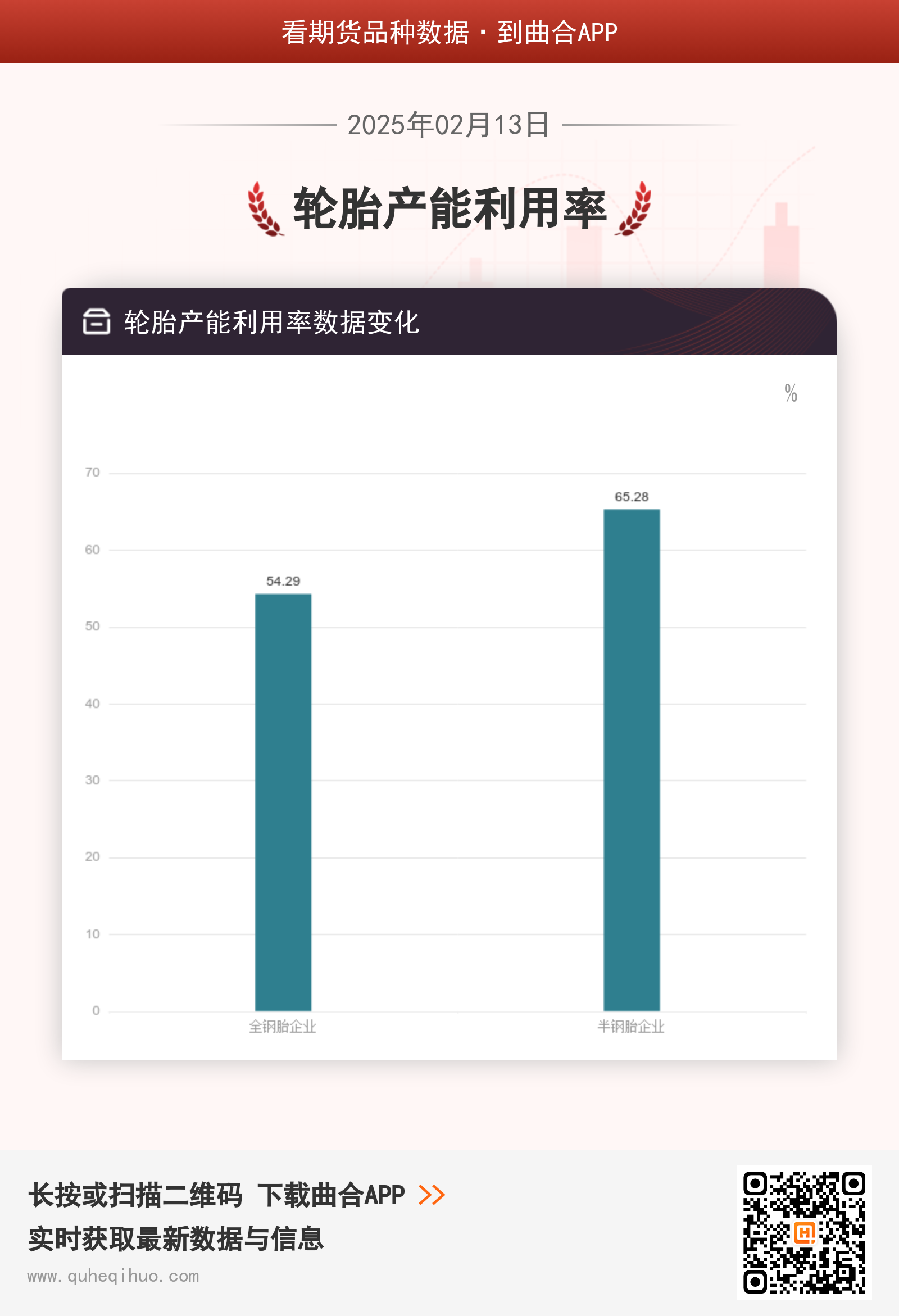 截止2月13日,全钢胎企业产能利用率为 54.29%,较上一周增加41.04%,环比涨幅309.74%。半钢胎企业产能利用率为 65.28%,较上一周增加52.64%,环比涨幅416.46%。