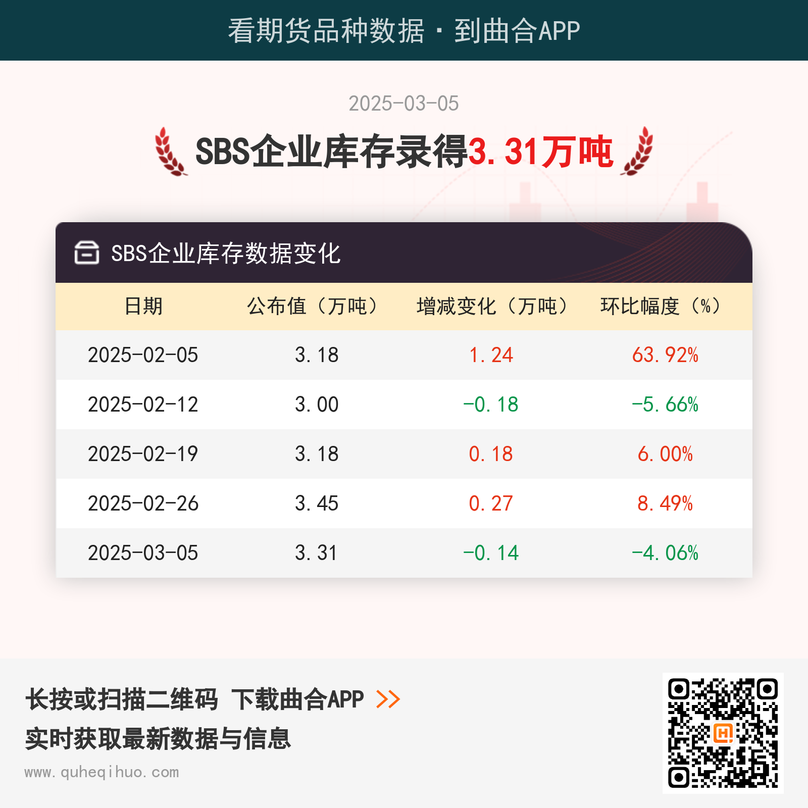 近期SBS企业库存数据变化如下: